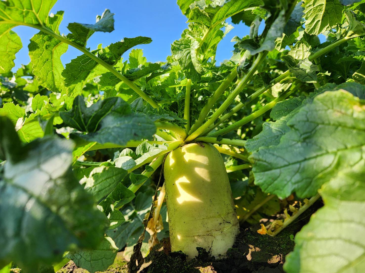 ・甘劇大根は市場にあまり出回らない希少品種で通常の大根より短い形が特長です。